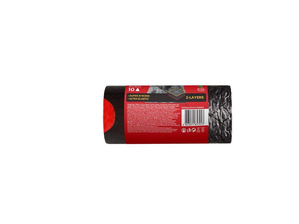 Jedinečný, pružný dvojvrstvový odpadkový sáčok. Typ so zaťahovacou šnúrkou pre jednoduché zatváranie, manipuláciu a prepravu. Extra nosnosť. Špeciálna textúra materiálu v tvare diamantu so zvýšenou pružnosťou. Fólia chráni obsah sáčku aj pred ostrými predmetmi bez toho, aby došlo k prerezaniu a poškodeniu.- so zatváracou páskou