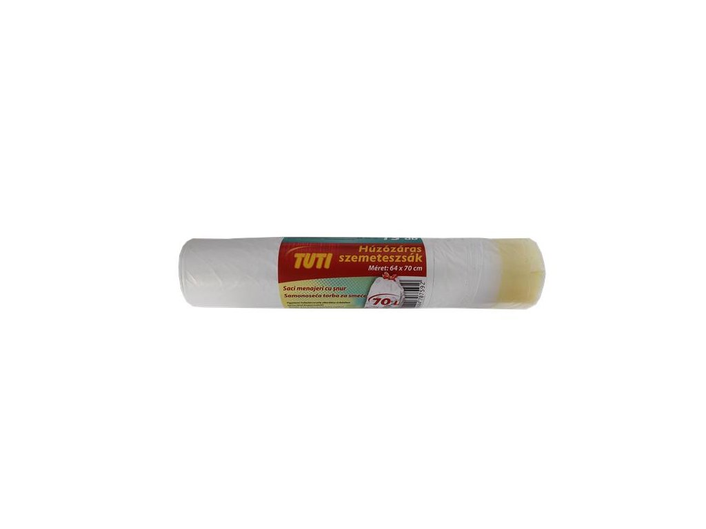 Vrecia na odpadky, zaťahovacie, 70 l, 15 ks, 64x70 cm, 14 µ, TUTI, biela