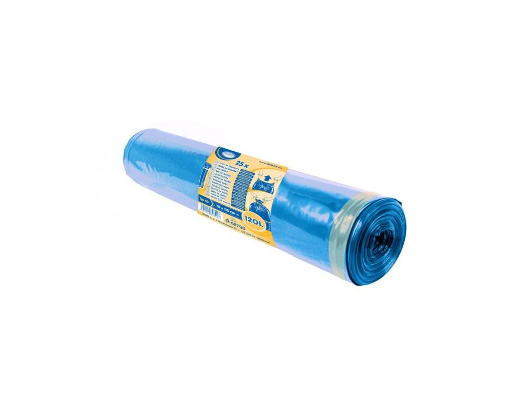 Vrecia na odpad 120 l LDPE, Typ 60 zaťahovacie modré 70 x 100 cm. 1 rolka = 25 ks. Hrúbka 38 mic.Dodatočné parametre