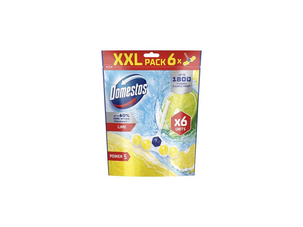 Domestos Power5 WC osviežovač blok pomáha predchádzať usadzovaniu nečistôt a vodného kameňa medzi čisteniami. Po každom spláchnutí zanecháva bohatú penu, ktorá zabraňuje usadzovaniu vodného kameňa, odstraňuje nečistoty a zanecháva toaletu čistú a žiarivú s dlhotrvajúcou príjemnou vôňou.