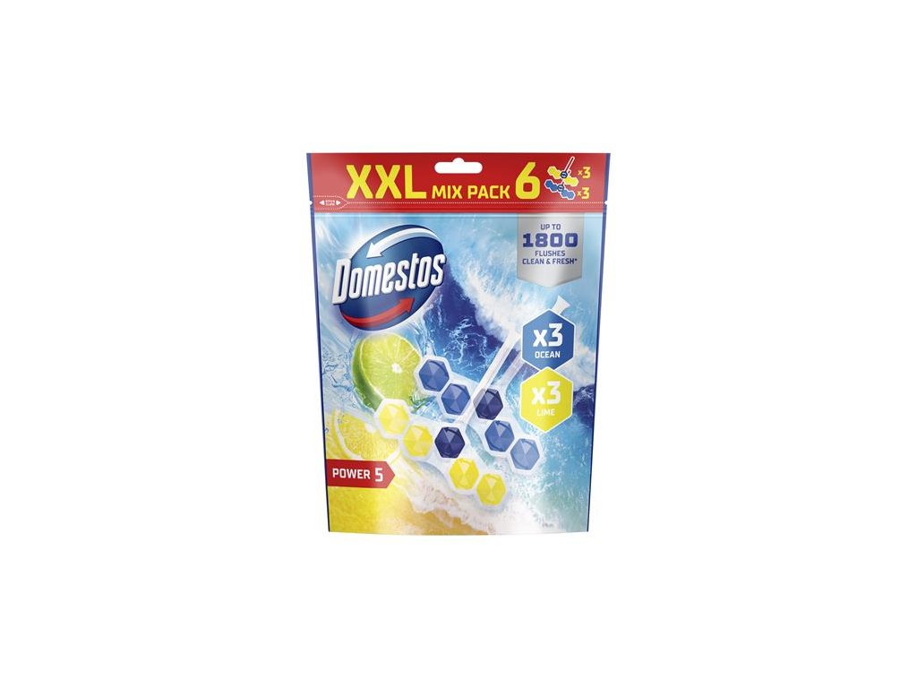 WC osviežujúci blok, 6-kusový, DOMESTOS "Power 5", oceán a limetka