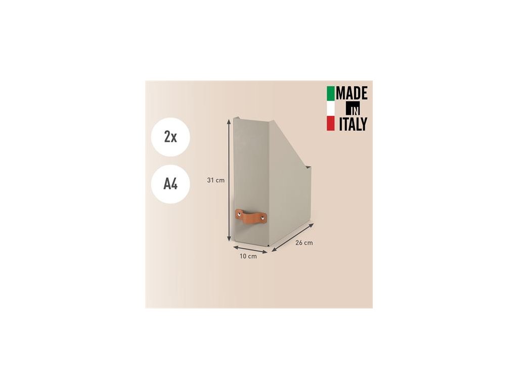 Súprava dvoch stojanov na časopisy zo 100% recyklovaného kartónu s certifikátom FSC s moderným a čistým dizajnom, ktorý doplní vašu domácnosť aj kanceláriu.