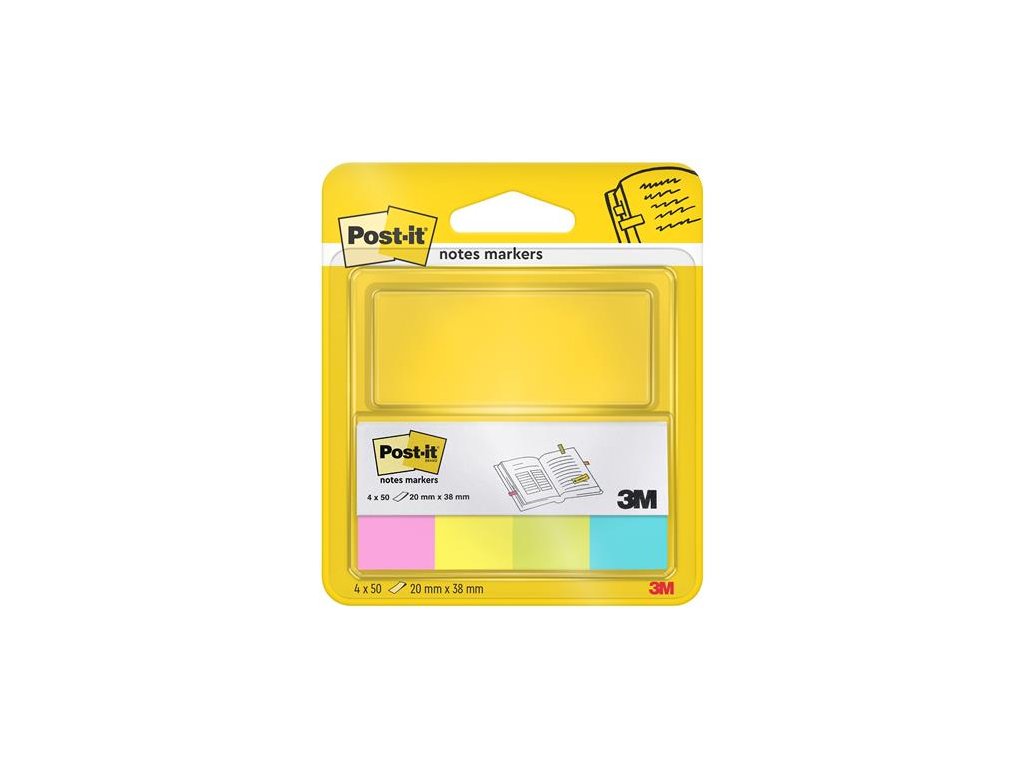 Záložka, papierová, 4x50 listov, 20x38 mm, 3M POSTIT, neónové farby