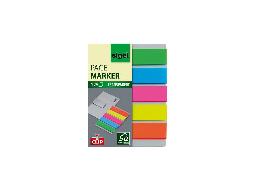 Záložky, plastové, 5x25 záložiek, 12x50 mm, s klipom, SIGEL "Clip", mix farieb
