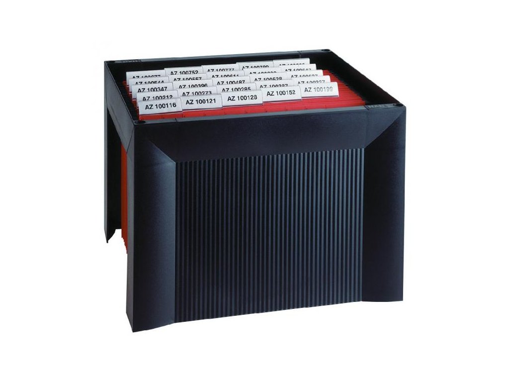 Zásobník HAN vhodný na závesné obaly A4 s prístupom zhora. Kvalitné prevedenie, jednoduchá montáž, možnosť nastavenia viacerých zásobníkov na seba. Gumené podložky zabraňujú kĺzaniu a šetria povrch pracovnej plochy. Kapacita cca 23 závesných obalov typu V.Rozmery (š x v x h): 355 x 260 x 320 mm