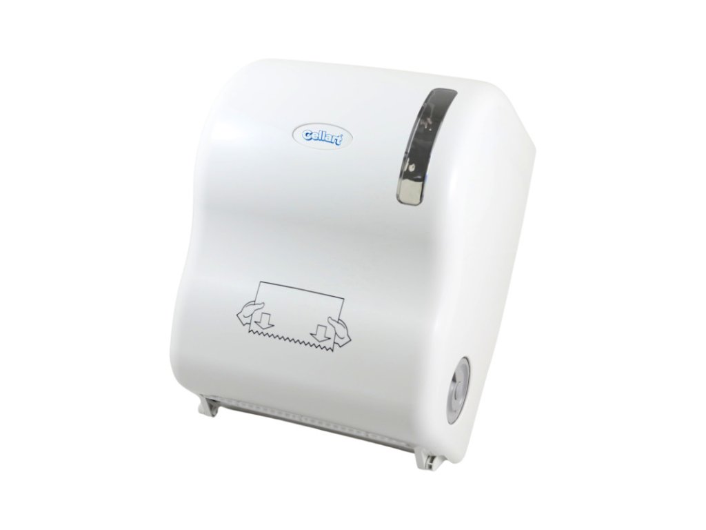 Zásobník utierok CELLART Auto-Cut biely * Autocut zásobník na papierové utierky. * Vyrobený z bieleho ABS plastu, vysokej kvality a odolnosti. *Zámok na kľúč, indikátor hladiny a sklopný kryt. *210 mm. maximálny priemer kotúča, dodáva vopred narezané uteráky, jeden po druhom, každý s dĺžkou 28 cm. * Najnovšia technológia pre zníženie nákladov a spotreby. * Nevyžaduje sa žiadna páka, rukoväť, batéria ani napájanie. *Vnútorná rezačka na prerezanie papiera je vyrobená výhradne z ocele a je chránená tak, aby nebola prístupná zvonku. *Výhradne ručná prevádzka papiera * Jednoduché a rýchle doplnenie. * Jednoduchá obsluha vnútorného mechanizmu, ľahko prístupná. * Hladko potiahnite papier na automatické orezanie. *Malé kolieska umiestnené na oboch stranách, aby viedli papier a zaistili vždy dodávku papiera. *Dotýkate sa iba jednotlivo papiera, ktorý budete používať * Jednoduché čistenie a údržba, dlhá životnosť. * Znížené náklady vďaka nízkej spotrebe papiera. * Robustný a odolný. *Reže a dodáva papier iba v momente použitia. *Režim použitia znázornený pomocou piktogramu. * Ideálne pre miesta s vysokou frekvenciou osôb.Dodatočné parametre