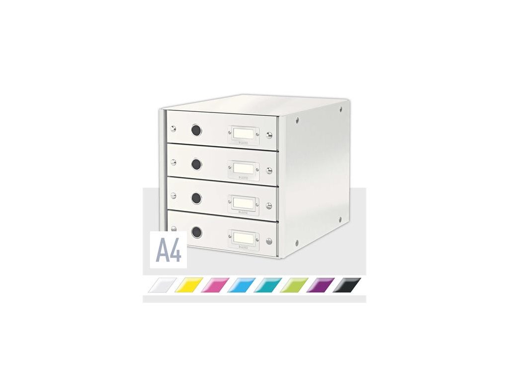 Zásuvkový box, polaminovaný kartón, 4 zásuvky, LEITZ "Click&Store", biela