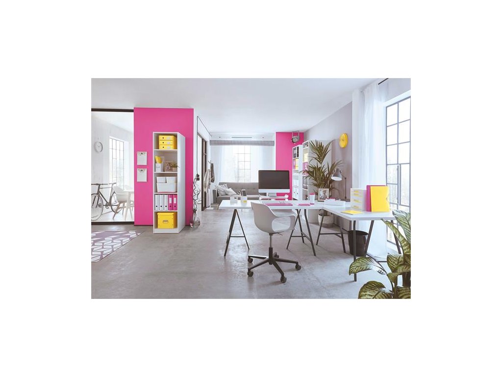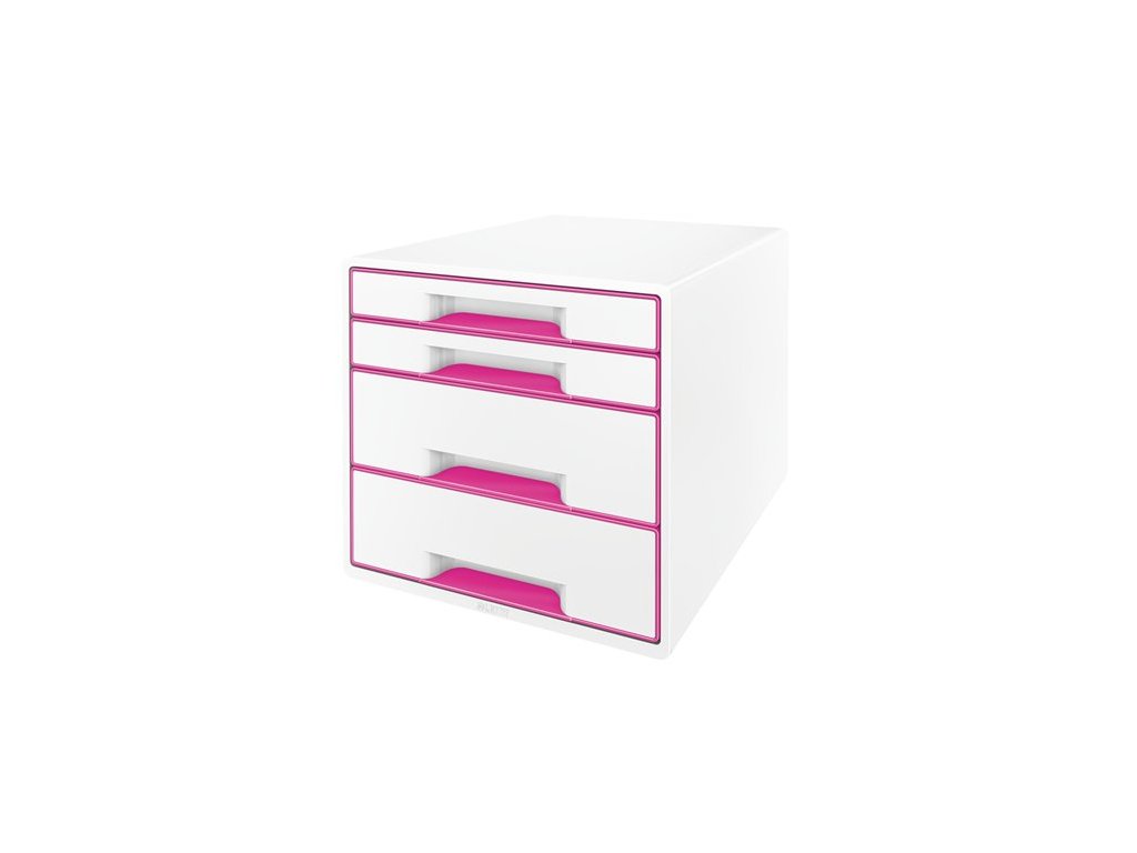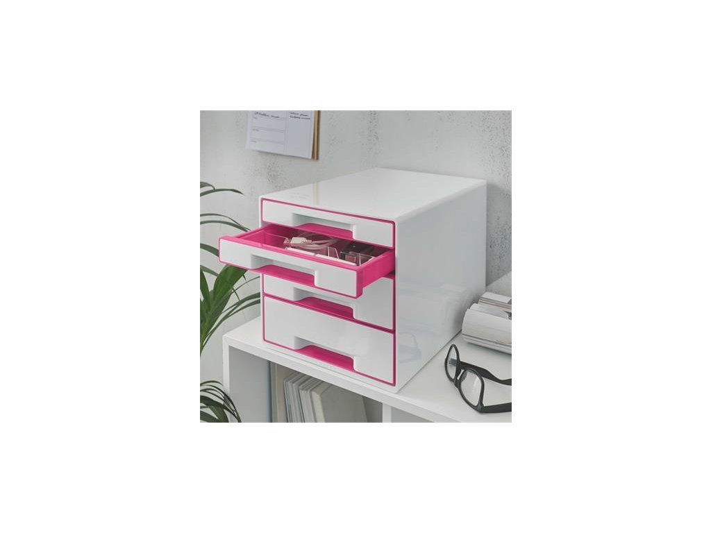 Zásuvkový box na dokumenty, plastový, 4 zásuvky, LEITZ "Wow Cube", biely/ružový