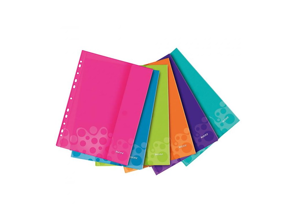 Obaly na dokumenty formátu A4 s uzatváraním na suchý zips a multiperforáciou na zakladanie do zakladačov. V dizajne radu Leitz WOW. Kapacita 50 listov papiera formátu A4. Balenie 6 ks v mixe farieb (ľadová modrá, metalická modrá, metalická oranžová, metalická zelená, metalická ružová a purpurová). Formát A4.Dodatočné parametre