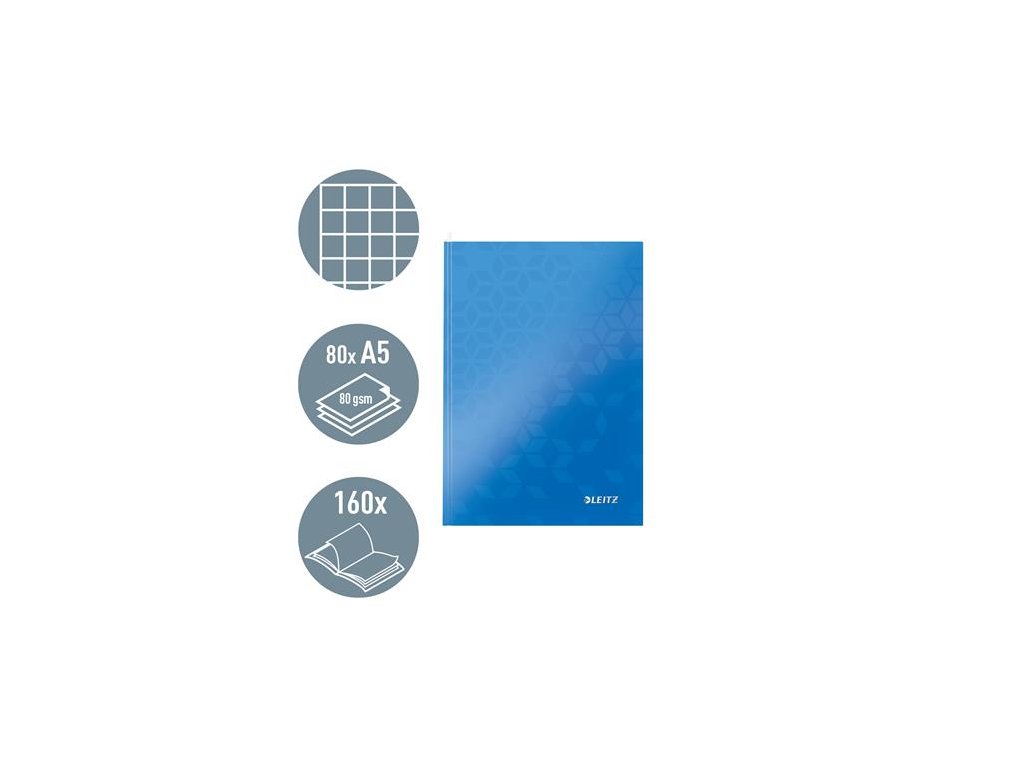 Záznamová kniha, A5, štvorčeková, 80 listov, tvrdá obálka, LEITZ "Wow", modrá