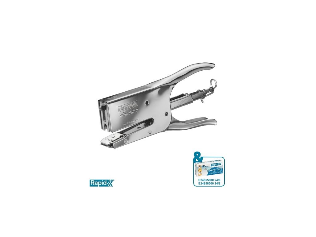Najpredávanejšie zošívacie kliešte na svete, obľúbené v kvetinárstvach. Funkčné so spinkami 24/6. Vhodné tiež pre pošty, obchody, sklady, domácnosti a kancelárie. Značka: RAPID Výrobca: Esselte Kft. Adresa: 1139 Budapest, Lomb u. 37-39. A ép. II. 8., Hungary Web: https://www.accobrands.com/brands/ Email: hungarymarketing@acco.comDodatočné parametre