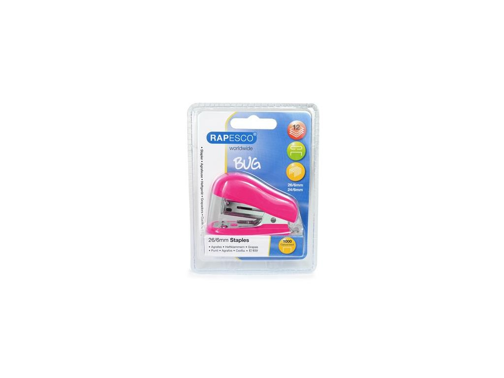 Zošívačka, 24/6, 26/6, 12 listov, RAPESCO "Bug Mini", ružová