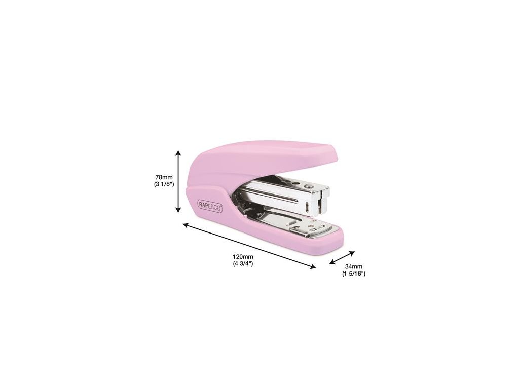 - stolová zošívačka - plastové telo, kovová konštrukcia - zhora dopĺňateľná - kapacita: 25 listov - spinky: 26/6, 24/6 - plnené: nie - ploché zošívanie: nie - hĺbka zošívania: 59 mm - nastaviteľná hĺbka zošívania: nie - znížené vynaloženie sily: 60% - zabudovaná rozošívačka: nie - nástenkové zošívanie: nie - otvorené zošívanie: áno - farba: ružová - rozmery: 120 x 34 x 78 mm - 15 ročná záruka Značka: RAPESCO Výrobca: Rapesco-Tacwise BV Adresa: Kraijenhoffstraat, 137A, 1018RG Amsterdam, Netherlands Web: www.rapesco.com Email: support@rapesco-tacwise.nlDodatočné parametre