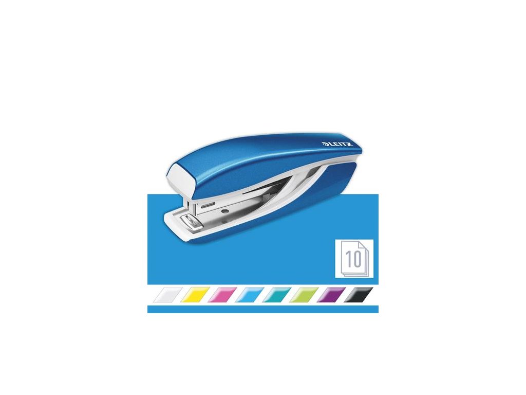 Zošívačka, mini, No. 10, 10 listov, kovová, LEITZ "Nexxt Wow", modrá