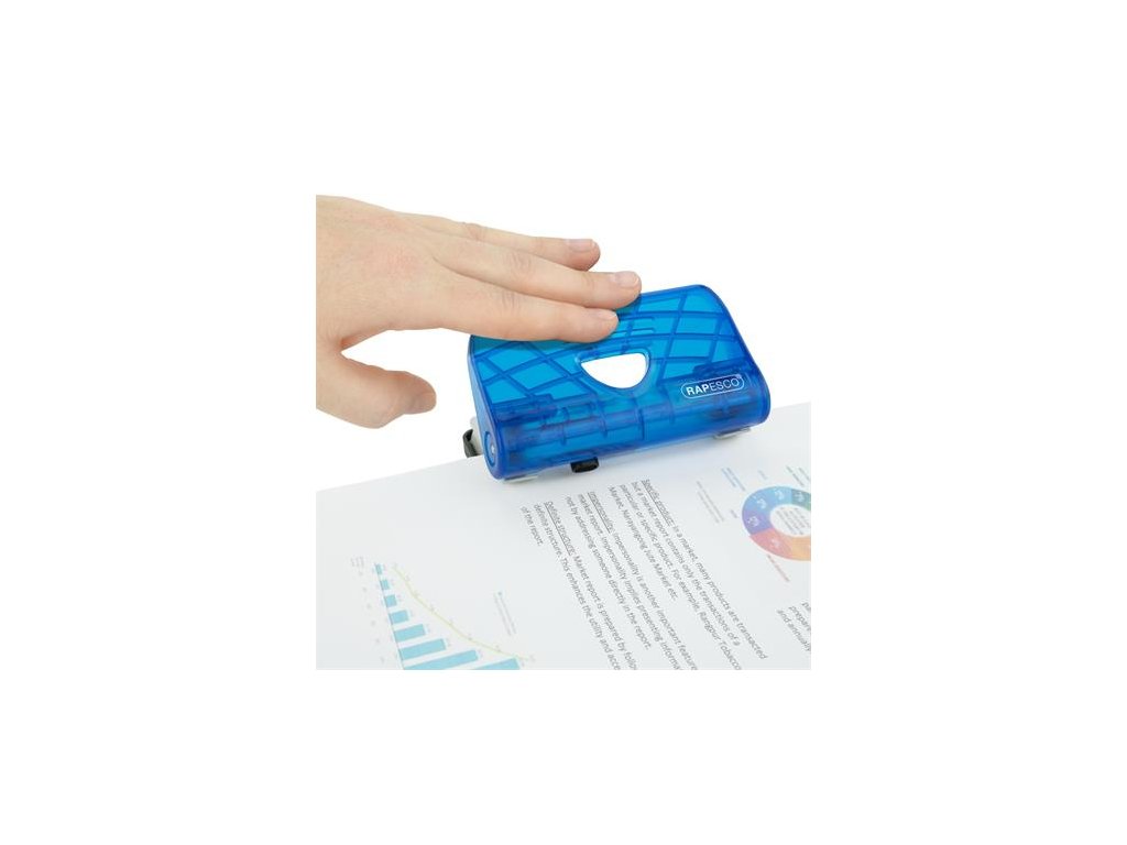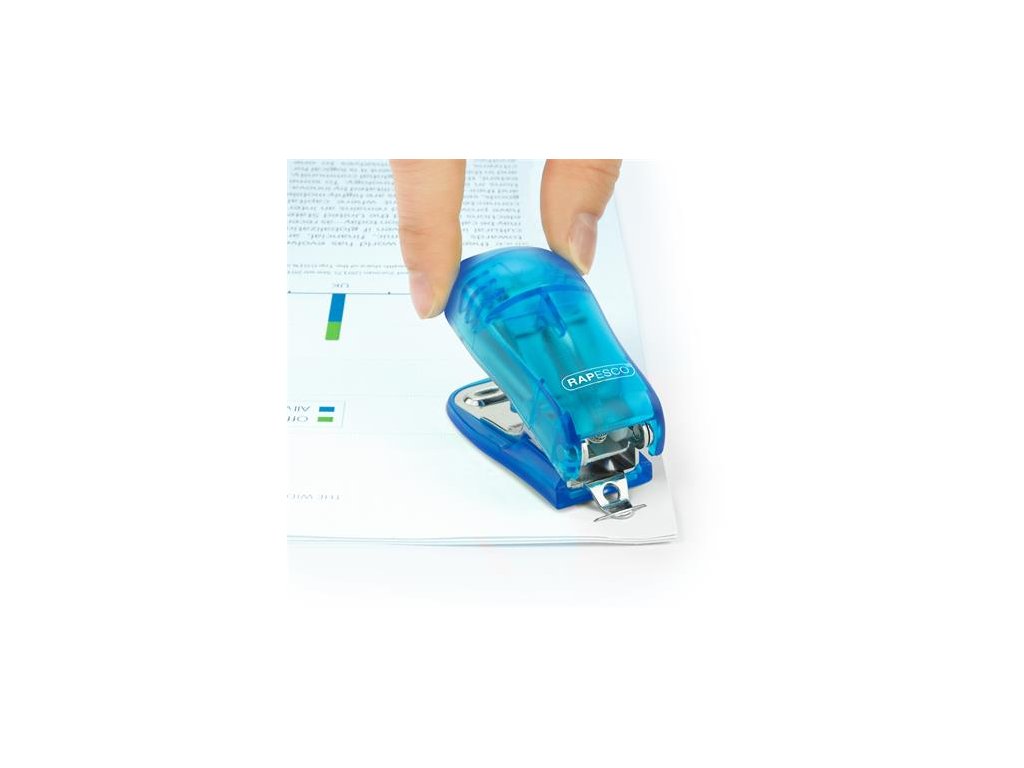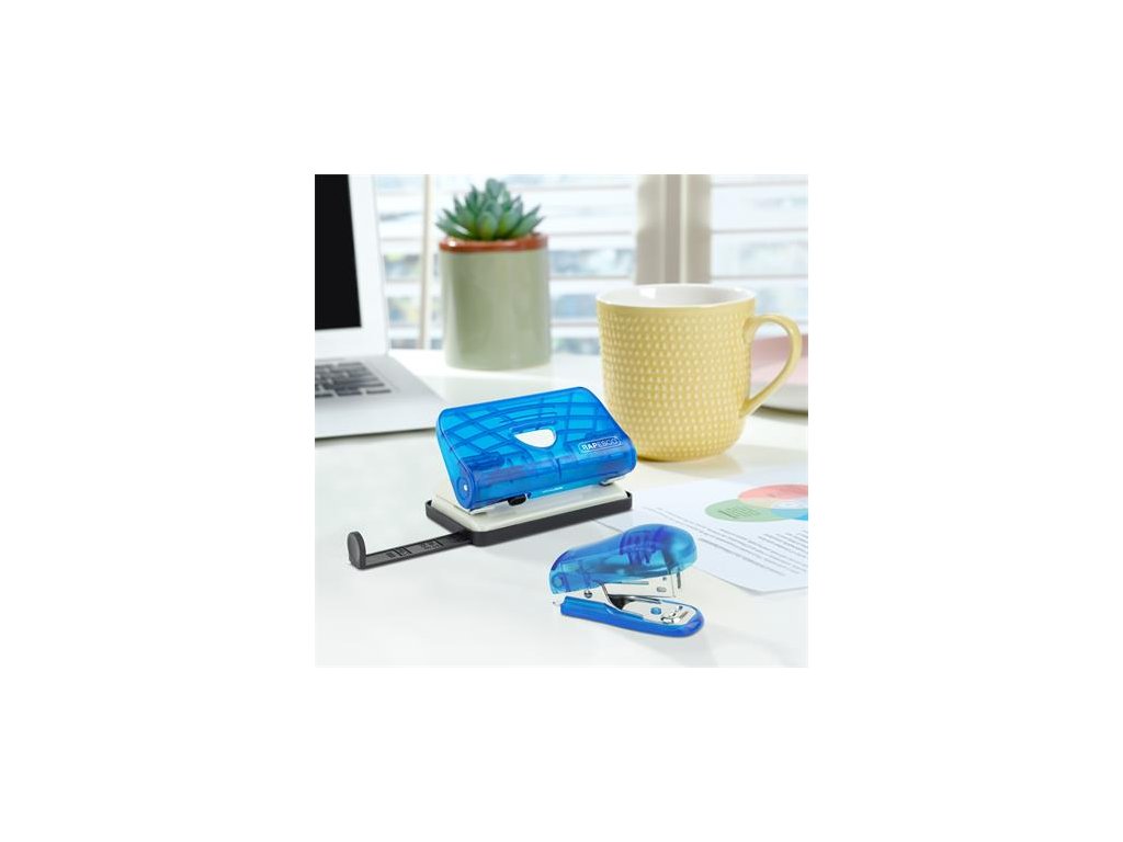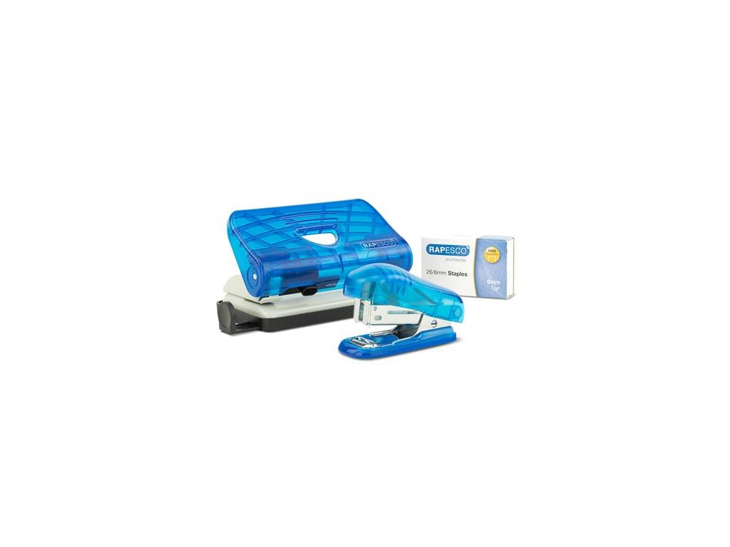 Zošívačka a dierovačka, set, 24/6, 26/6, 12 listov, RAPESCO, priehľadná modrá, so spinkami