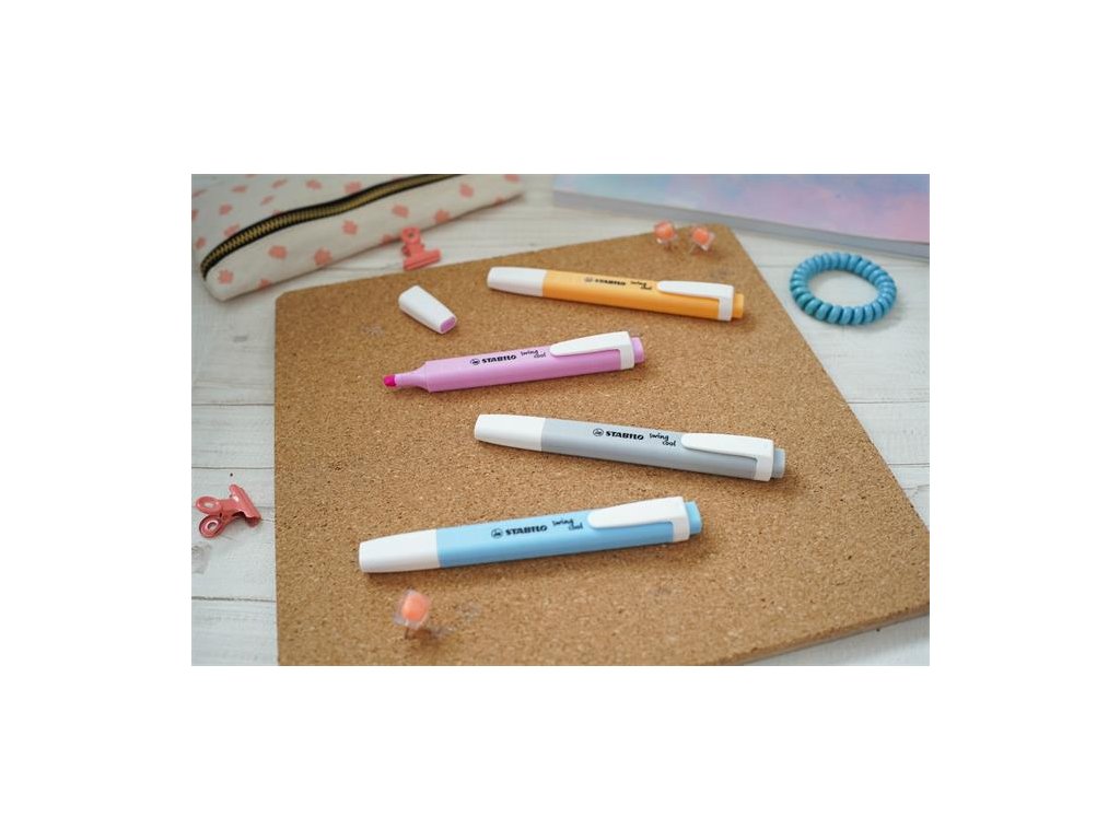plochý, tenký zvýrazňovač vhodný do vrecka v elegantnej pastelovej farbe farba písma tiež pastelová pohodlne sa zmestí aj do peračníka protišmykový úchyt bez uzáveru nevyschne až 4 hod uzáver s ventilom atrament na vodnej báze zrezaný hrot (1-4 mm) Značka: STABILO Výrobca: STABILO international GmbH Magyarországi Fióktelepe Adresa: 1033 Budapest, Szőlőkert köz 7/a., Hungary Web: www.stabilo.hu Email: info.hu@stabilo.comDodatočné parametre
