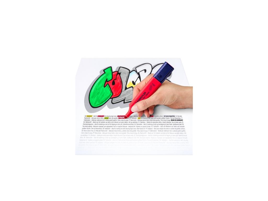 - zvýrazňovač s veľkým obsahom pre dlhšiu životnosť - vďaka "Ink-Jet Safe" nešpiní a nezanechá čmuhy - fialová a tyrkysová farba sa dá kopírovať - dá sa použiť na papier, faxový papier a indigo papier - rýchlo schne - ľahko sa otvára - zrezaný hrot - ploché, polypropylénové telo - automatický vyrovnávač tlaku, zabraňuje úniku atramentu počas letu - živé farby - zvýraznený text sa dá kopírovať - hrúbka písma: 1-5 mm - polypropylénové telo vo farbe atramentu - doplniteľné Značka: STAEDTLER Výrobca: STAEDTLER SE Adresa: Moosäckerstr. 3 , 90427 Nuremberg, Germany Web: http://www.staedtler.com Email: https://www.staedtler.com/intl/en/service/contact/Dodatočné parametre