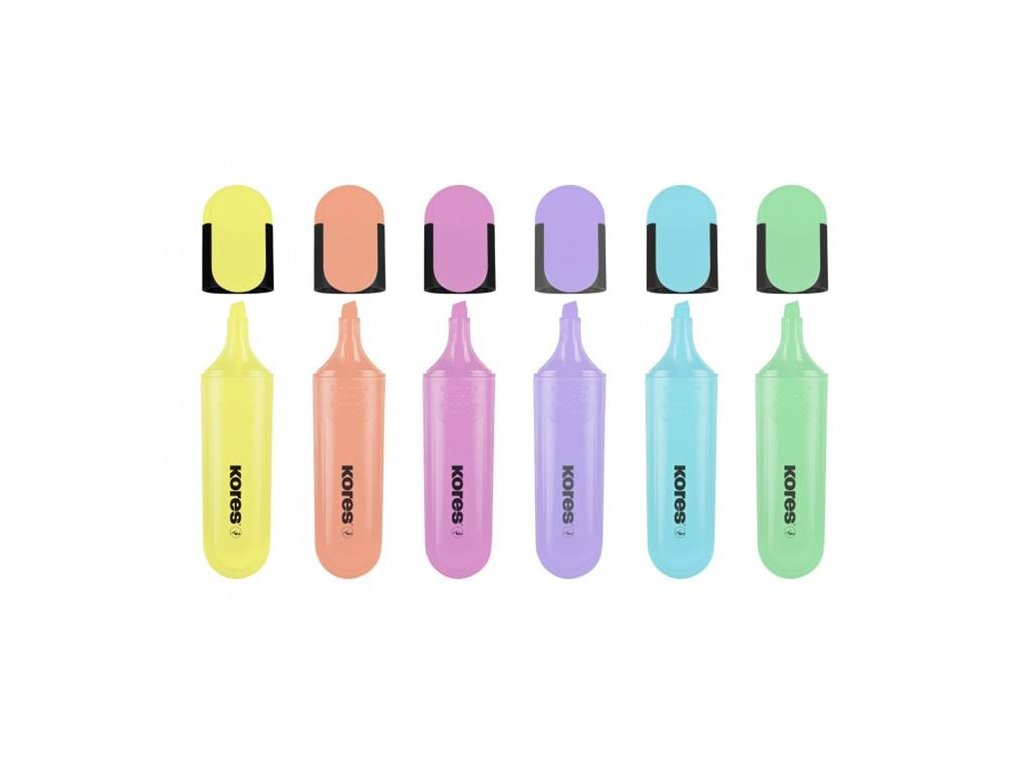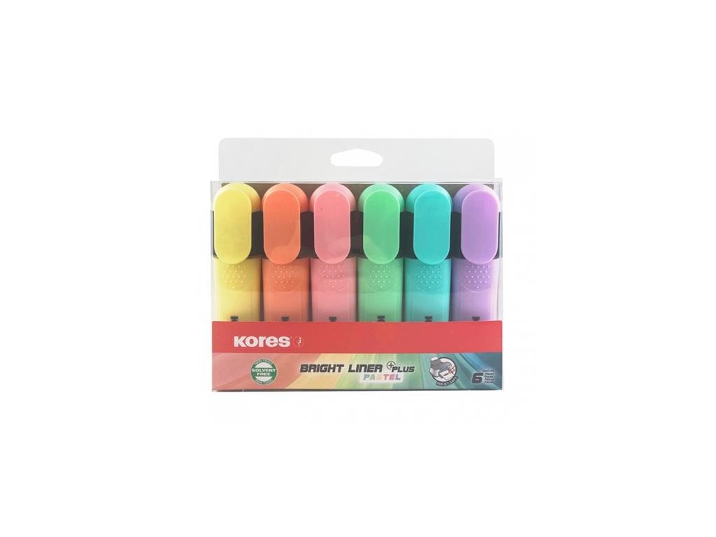 Zvýrazňovač, sada, 0,5-5 mm, KORES "Bright Liner Plus Pastel", 6 rôznych farieb