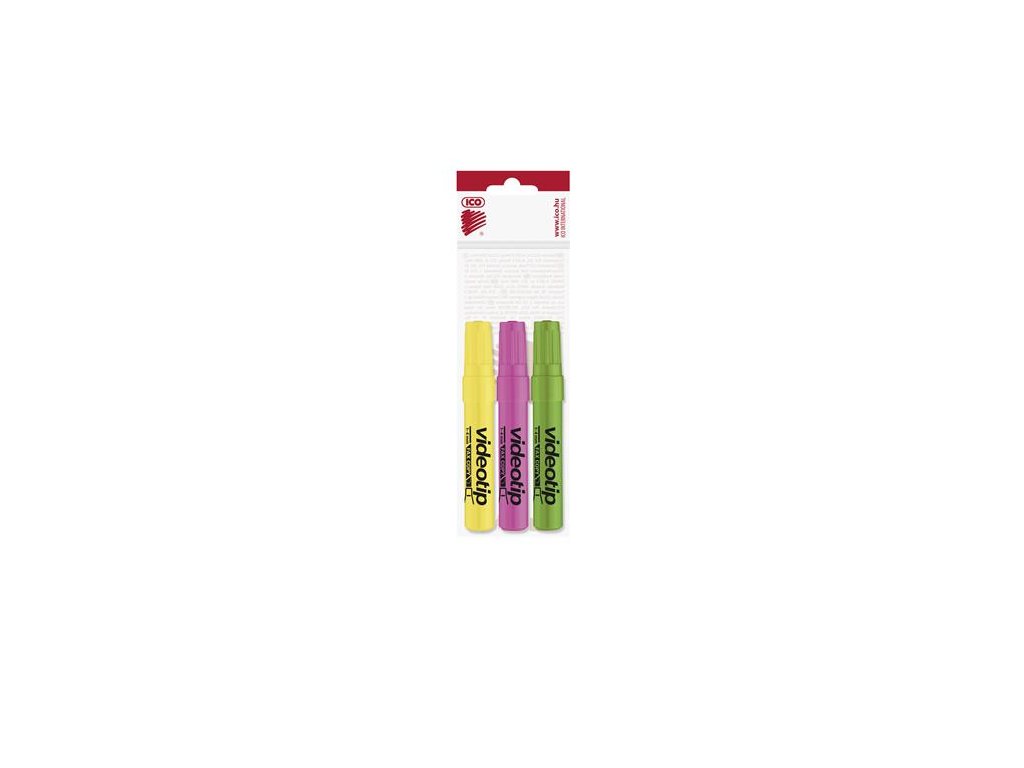 Zvýrazňovač, sada, 1-4 mm, ICO "Videotip", 3 rôzne farby