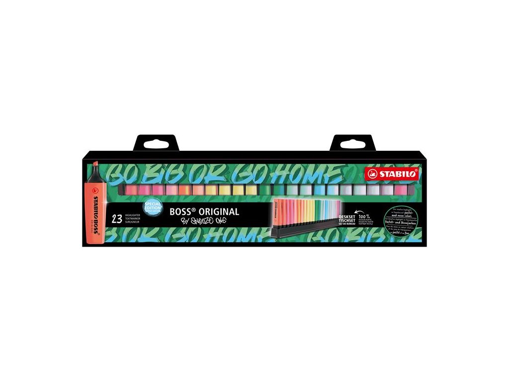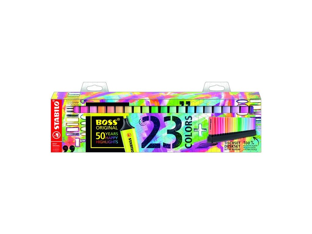 Zvýrazňovač, sada, 2-5 mm, STABILO "Boss 50th Birthday" 23-kusová stolová sada