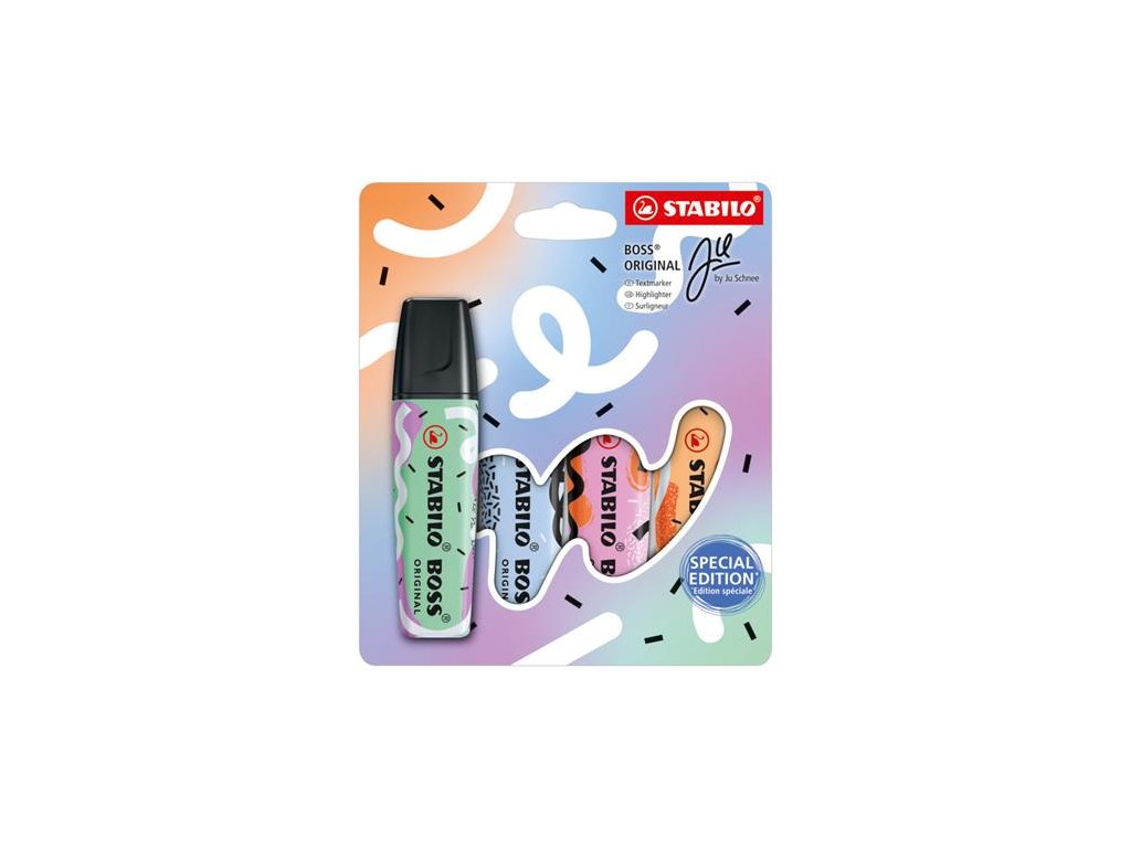 Zvýrazňovač, sada, 2-5 mm, STABILO "Boss Original Ju Schnee", 4 rôzne farby