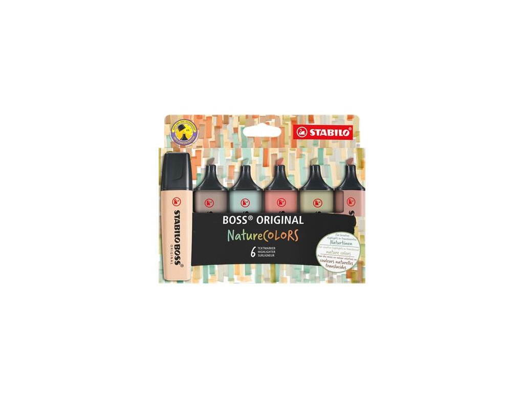 Zvýrazňovač, sada, 2-5 mm, STABILO "BOSS original NatureColors", 6 rôznych farieb