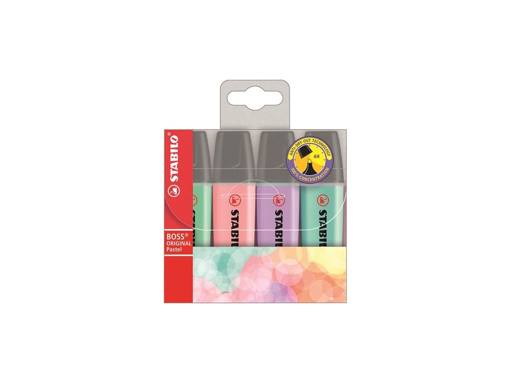 Zvýrazňovač, sada, 2-5 mm, STABILO "BOSS original Pastel2", 4 rôzne farby