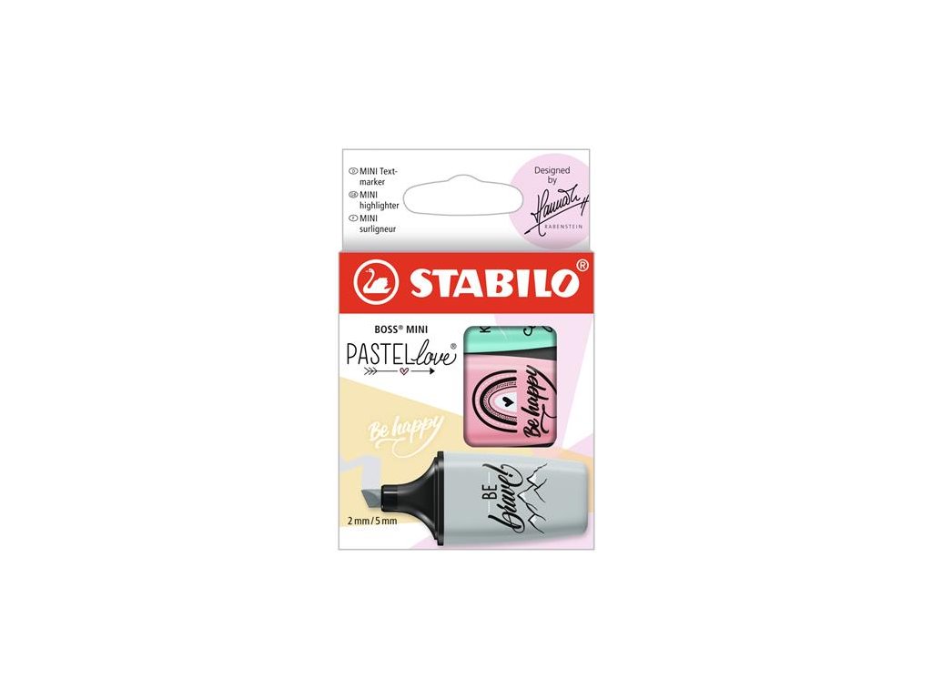 Zvýrazňovač, sada, STABILO "Boss Mini Pastellove", 3 rôzne farby